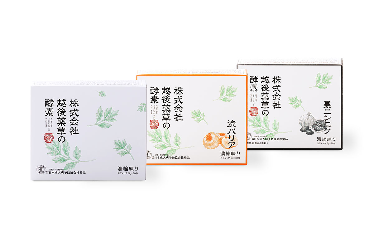 野草という「素材」、陶器のかめという「器」、発酵に適した上越という「風土」の3つの要素を掛け合わせた代表商品「株式会社越後薬草の酵素」は、酵素業界で唯一、医学団体 日本成人病予防協会から品質と安全性を評価され、推奨品として認可されています。
